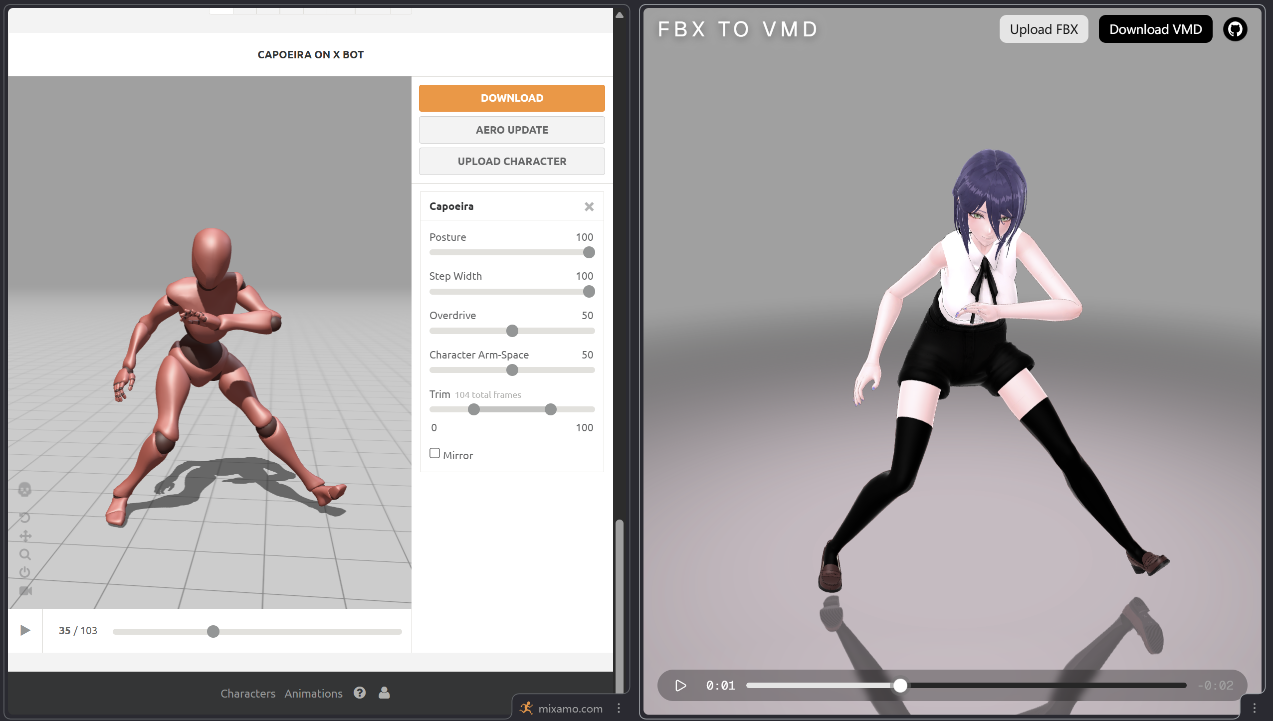 Github: https://github.com/AmyangXYZ/Mixamo-MMD
